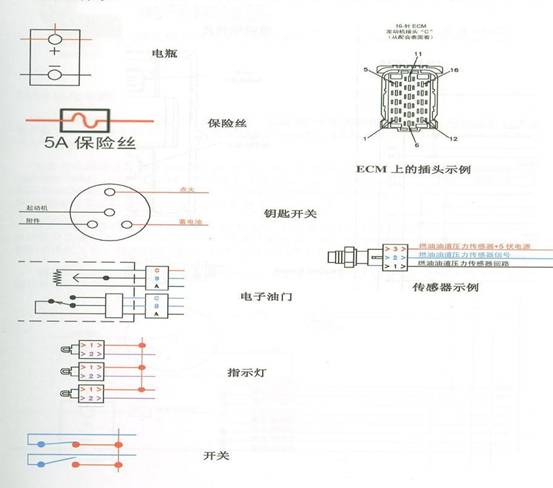 輸入設備由ECU(M)提供工作電源,大部分輸入設備的工作電壓都為5伏。