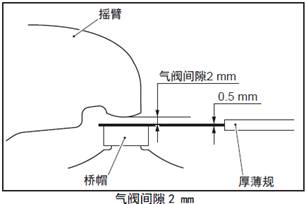 (1) 將0.5 mm的厚薄規(guī)插入在橋帽和搖臂之間。(三菱S6R柴油發(fā)動機(jī)氣閥門間隙2 mm)
