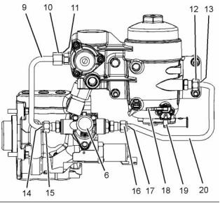 4. Install a new O-ring seal (4) and a new O-ring seal