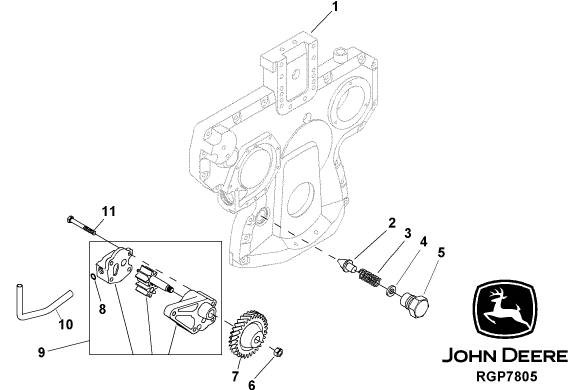John Deere約翰迪爾強鹿6068 6.8L柴油發動機機油泵和機油壓力調節閥零件圖冊