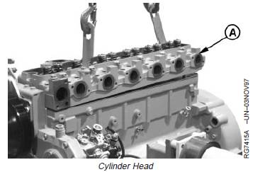 17. Lift cylinder head (A) from block. If cylinder headsticks, use a soft hammer to tap cylinder head.