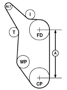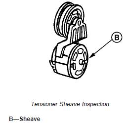 1. Visually inspect cast stops (A and B) on belt tensioner