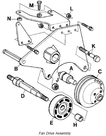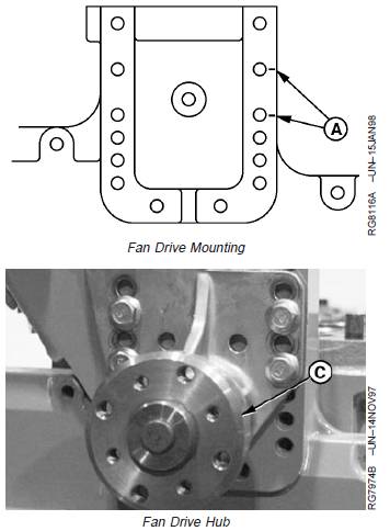 3. Install hub (C) with fan drive assembly, in positions (A)