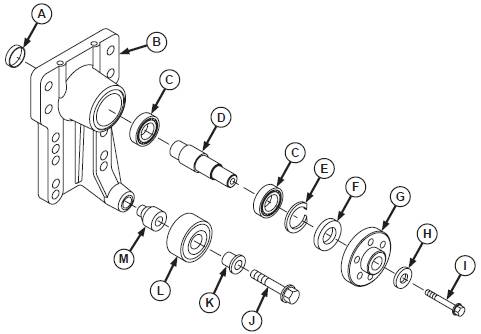 3. Slide alternator or tensioner bracket (D) in slot by hand