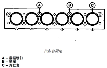 重要提示: 檢查汽缸套凸起(高于汽缸體部分)時,若要獲得精確的讀數,必須按技術規格的要求緊固帶帽螺釘和墊圈(詳見本章后面說明)。