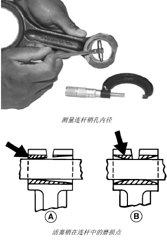 5. 按照本章后面說明的方法清潔、檢查和測量連桿銷孔內徑。