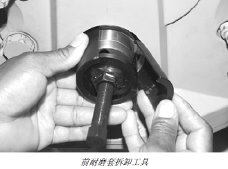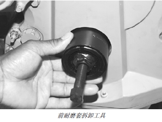 注意: 如果拆卸過程中耐磨套的凸輪緣開始滾動,應卸下拉拔器總成,使用更寬爪的夾頭卡住耐磨套。
