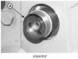 2. 在曲軸軸頭上安裝耐磨套 (A),耐磨套的凸輪緣應面向曲軸。