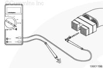 將測試導線連接到萬用表表筆。將與測試導線連接的萬用表另一支表筆插入 OEM 線束接頭上的開關回路導線。測量電阻。