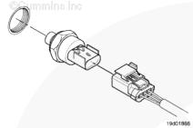 從康明斯ISB5.9 G CM2180 發動機線束上斷開傳感器。將鎖片扳至一側。向接頭的后部推壓按鈕,并從傳感器上拆下接頭。