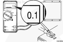 將開關轉到“ON”(接通)位置并測量電阻值。萬用表必須顯示開路(100 千歐或更大)。如果電路沒有開路,則開關故障。關于更換步驟,參考 OEM 故障判斷和排除手冊。