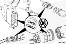 從遠程油門開關信號導線拆下測試導線,然后檢查所有其它觸針。萬用表必須顯示開路(100K 歐姆或更大)。
