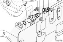 注: 康明斯ISB5.9 G CM2180 發動機上裝有兩個爆震傳感器。使用下列步驟了解康明斯ISB5.9 G CM2180 發動機上的具體位置。參考第 E 節中的步驟 100-002。