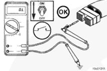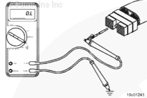 將開關置于斷開位置并測量電阻。萬用表必須顯示閉路(10 歐姆或更小)。如果電路沒有閉合,則開關故障。關于更換步驟,參考 OEM 故障判斷和排除手冊。如果電阻值正確,必須檢查開關是否仍舊存在對地短路。