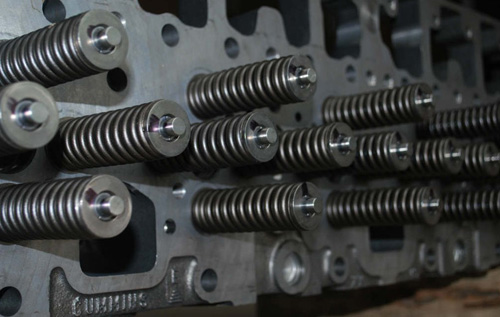 一、康明斯柴油機氣缸蓋的檢修:康明斯B系列專用柴油機采用整體式氣缸蓋,用優質灰鑄鐵鑄造 而成。氣缸蓋上布置有進、排氣道及冷卻水道,安裝的零件有進、排氣門、搖臂總成、噴油器、節溫器、排氣管、氣門室罩等。