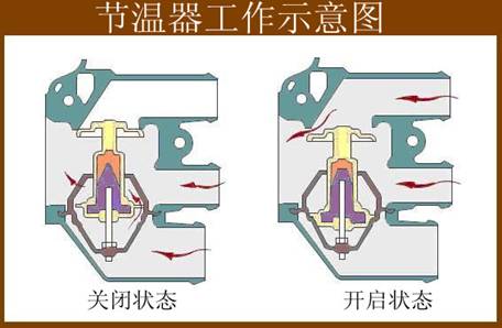節溫器裝在缸蓋出水口處的節溫器體內,用來調節進入散熱器的水量。它在發動機低溫起動后可以加速預熱過程。