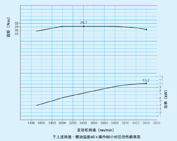 發動機3600 rpm時,功率達10.2 kW,13.7 bhp