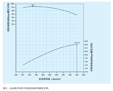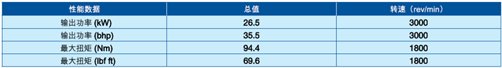 3000 rpm時,功率達26.5 kW,35.5 bhp