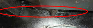 造成此故障的現(xiàn)象:發(fā)動(dòng)機(jī)的飛輪殼開裂(如下圖所示),有時(shí)表現(xiàn)的現(xiàn)象為發(fā)動(dòng)機(jī)后部漏油,進(jìn)一步觀察,主要原因是飛輪殼開裂所致。 造成此故障的原因分析:主要原因是整車傳動(dòng)系統(tǒng)振動(dòng)過大,導(dǎo)致飛輪殼被震裂 此故障的維修解決方法:更換飛輪殼、整車傳動(dòng)軸