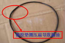 造成此故障的現(xiàn)象:發(fā)動機(jī)起動后,前端出現(xiàn)噠、噠、噠、、、、異響,發(fā)動機(jī)工作正常,并且在轉(zhuǎn)向泵與缸體結(jié)合處出現(xiàn)漏油的現(xiàn)象。 造成此故障的原因分析:可能是轉(zhuǎn)向泵安裝不良,導(dǎo)致轉(zhuǎn)向泵齒輪與其它齒輪在嚙合時出現(xiàn)異常響聲。另外,可能是水泵、氣泵齒輪安裝不良所致。該問題的主要原因在連接轉(zhuǎn)向泵進(jìn)出油管時,由于安裝困難,用戶自行將轉(zhuǎn)向泵拆下,但在安裝時未能正確裝配,故而出現(xiàn)上述問題,圖片中的墊子被壓潰致使其接觸面漏油。 此故障的維修解決方法:更換轉(zhuǎn)向泵齒輪(或氣泵、水泵齒輪)