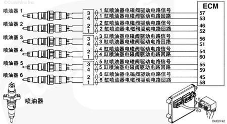 康明斯QSB6.7發動機ECM 使用診斷軟件來核實噴油器工作。在選擇的條件期間,每個噴油器均點火。然后噴油量和正時與指定的閥值進行比較。