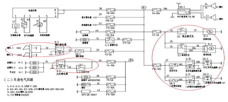 4:其它功能:主要有刮雨器、噴水器、空調器和收放音機等。