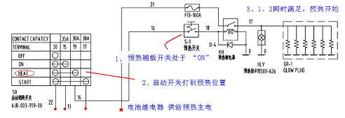 注意:預熱時間為人為控制,每次預熱時間不超過 15秒 !若欲詳細了解,請參看三菱發動機 本部分說明!