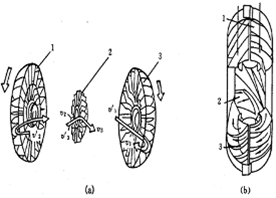 基本型液力變矩器主要由泵輪1、導輪2和渦輪3等組成,它們構成的環形封閉工作腔,是工作液體循環流動的環流通道。工作腔在通過回轉軸線切割的截面(即軸面)內所表示出的形狀,稱為循環圓。變矩器的循環圓以旋轉軸為中心線形成兩個完全對稱的部分。在循環圓中,工作液體過流部分的最大直徑,稱為循環圓的有效直徑。它是變矩器的代表尺寸,概括了變矩器的主要特征。因此,變矩器的型號通常用其循環圓直徑來表示。如我公司LG95系列裝載機用的YJSW315型液力變矩器,數字 “315”即代表該變矩器的循環圓直徑為∮315mm。