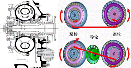 液力變矩器裝在發動機與變速箱之間,它的主要功用是改變發動機供給的扭矩值,使得渦輪的輸出扭矩有可能超過發動機通過泵輪輸入的扭矩,改善裝載機的動力性能,井使傳動平穩。在變矩器上通常還設有取力接口,用于將發動機的一部分動力傳給液壓油泵,以驅動裝載機工作液壓系統及轉向系統工作。