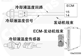電子控制模塊 (ECM) 利用 CTS 監測發動機冷卻液溫度。ECM 監測信號觸針上的電壓并將它轉換成溫度值。ECM 將冷卻液溫度用于發動機保護系統和供油控制。