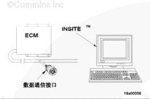 條件 連接所有部件。 采取措施 使用 INSITE™(零件號 3825145)清除非現行故障代碼。 注:數據通信接口接頭位于飛輪殼右排上。 |