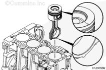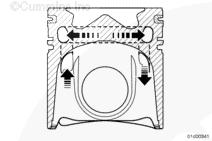 康明斯ISF3.8 CM2220 AN 和 IAN 發動機活塞冷卻液噴嘴向活塞底面供應機油。活塞頂部中鑄有冷卻油道。可以使用加大尺寸的活塞。 請參考第 1 節中的步驟 001-026 以了解缸體維修信息。可以使用加大尺寸的活塞環。