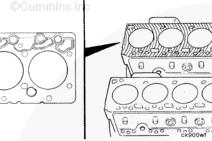 康明斯ISF3.8 CM2220 AN 和 IAN 發(fā)動(dòng)機(jī)缸蓋密封墊采用專門的金屬設(shè)計(jì),水孔周圍的兩側(cè)都有印制的 O 形圈。密封墊上的壓紋密封住了缸孔。密封墊還提供節(jié)流作用,控制缸體流至缸蓋的冷卻液流。本手冊(cè)涉及的發(fā)動(dòng)機(jī)不需要進(jìn)行缸蓋密封墊分級(jí)。對(duì)于缸蓋或缸體燃燒表面的重修,可以使用厚度增大的缸蓋密封墊。