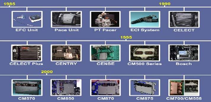 由于電控柴油機燃油系統的多樣性,康明斯有多種不同型號的 ECM用在不同型號的發動機上。下圖列出了不同年代在康明斯發動機上使用的 ECM。這些 ECM具有不同的零件號,在定購時請注意。