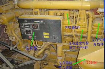 汽缸和氣門的位置(所示為3512柴油機)燃油定時和氣門間隙調節