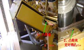 并按柴油機正常轉向將飛輪1轉動360°將定正時螺栓2擰入氣輪時,確定1號活塞位于是否壓縮沖程,還是排氣沖程式上死點。