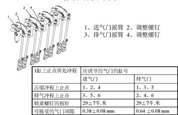 應調節的氣門的缸號進氣門1、2、4 3、5、6 29±7牛.米 0.38±0.08 mm