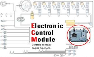 • 1、 ECM電子控制模塊,2、 噴油泵,3、 傳感器,4、 開關(guān),5、 連接線纜