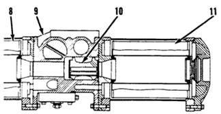 在進行普通操作時,控制閥應位于“主運轉”位置。潤滑油將通過主過濾倉(1)中的主過濾管(8)流出,過濾后的油會經檢驗閥(10)向右流并阻塞輔倉(3)內的油路。(如 A-A部分所示位置)。在這個位置,當油壓消失后,輔過濾管將被更換,輔倉會被抽空。