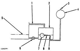 (1)前倉排氣孔 (2)調節器 (3)排氣孔 (4)油源 (5)發動機的油盤 (6)閥門 (7)漂浮物 (8)旋軸 (9)閥門座