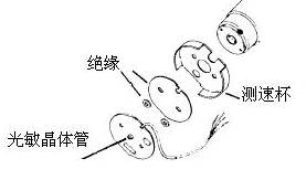 在電路板和速度傳感拖動杯中間插有一絕緣板和墊圈。整個裝置用兩個螺釘安裝在轉子軸上。