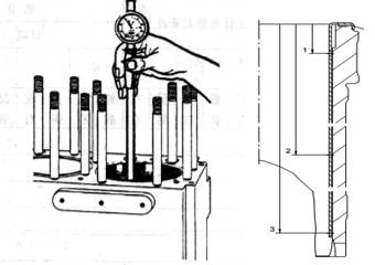 5.5用千分尺測量閥頭部及閥座尺寸,以確認尺寸沒有超出使用極限。
