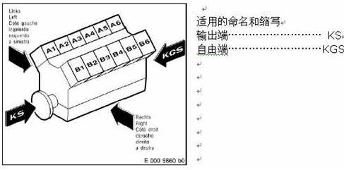 發動機排的命名總是按面向輸出端來觀察的。左排缸標識為A 排,右排缸標識為B 排(按照DIN ISO 1204 標準)。每排氣缸由輸出端起,從1 開始連續編號。