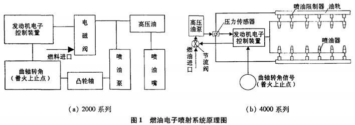 德國奔馳MTU2000系列柴油機采用電磁閥控制的電子噴射系統(tǒng),其工作原理如圖i(a)所示¨’。它是一個電磁