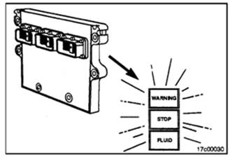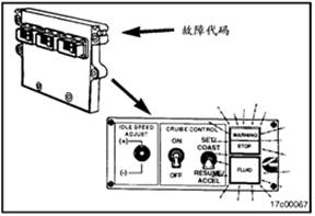 發(fā)動機電子燃油系統(tǒng)故障代碼可以在駕駛室內(nèi)面板上的WARNING指示燈和STOP指示燈看到。