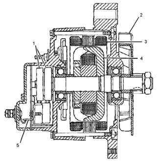 (1)集電環(huán) (2)風(fēng)扇 (3)定子 (4)轉(zhuǎn)子 (5)電刷組件