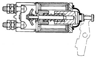 電磁閥有兩組繞在空心圓筒上的繞阻。圓筒內(nèi)有一個彈簧加載的芯柱。芯柱可來回移動。當(dāng)接通起動開關(guān) 電流流經(jīng)繞組時 電磁閥內(nèi)就產(chǎn)生磁場。磁場拉動芯柱在圓筒內(nèi)向前移動。這會移動撥桿以使驅(qū)動小齒輪與齒圈嚙合。芯柱前端接著使蓄電池和電磁閥的馬達(dá)接線柱發(fā)生接觸。Perkins起動馬達(dá)然后就開始轉(zhuǎn)動發(fā)動機(jī)飛輪。