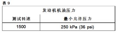 4請參閱表9以確定發動機機油壓力是否可以接受。