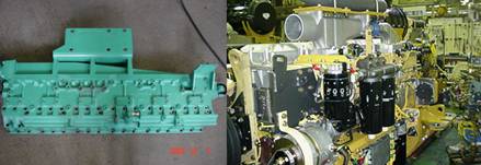 康明斯Cummins QSK23發動機鑄鐵飛輪殼體為曲軸后油封提供了安裝位置。 空氣壓縮機(如果使用)也裝在飛輪殼體上。飛輪殼體與缸體之間用密封膠密封。