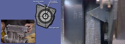 康明斯Cummins QSK23發動機用手轉動空氣壓縮機直至上止點。面向空壓機驅動齒輪側,將空壓機順時針轉大約30度角,裝上空壓機。